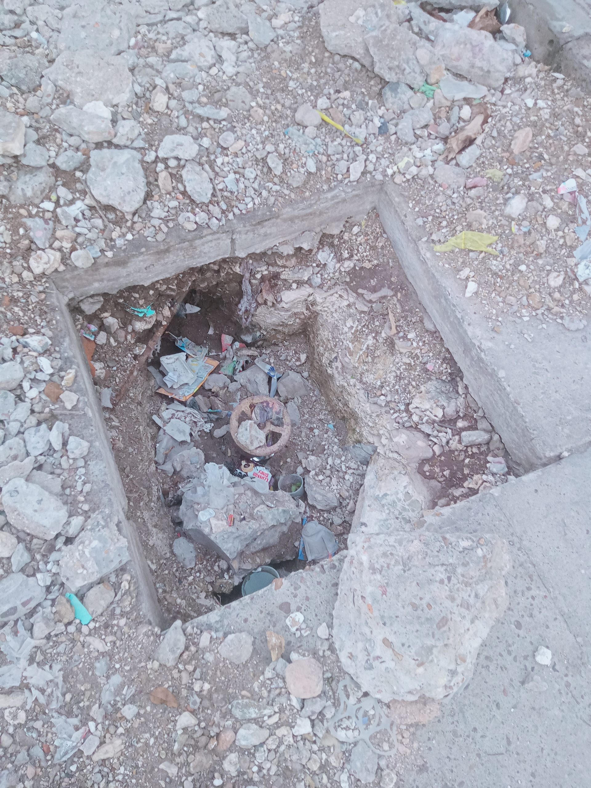 EL SIAPASF, REALIZO UNA REVISION DE UNA TOMA DE AGUA Y DEJO ABIERTO DONDE SE REALIZO LA OBRA, LO QUE HA OCASIONADO QUE SE LLENE DE BASURA Y UN PELIGRO PARA LOS VEHICULOS, TODA VEZ QUE NO SE COLOCO NINGUNA SEÑALIZACION.