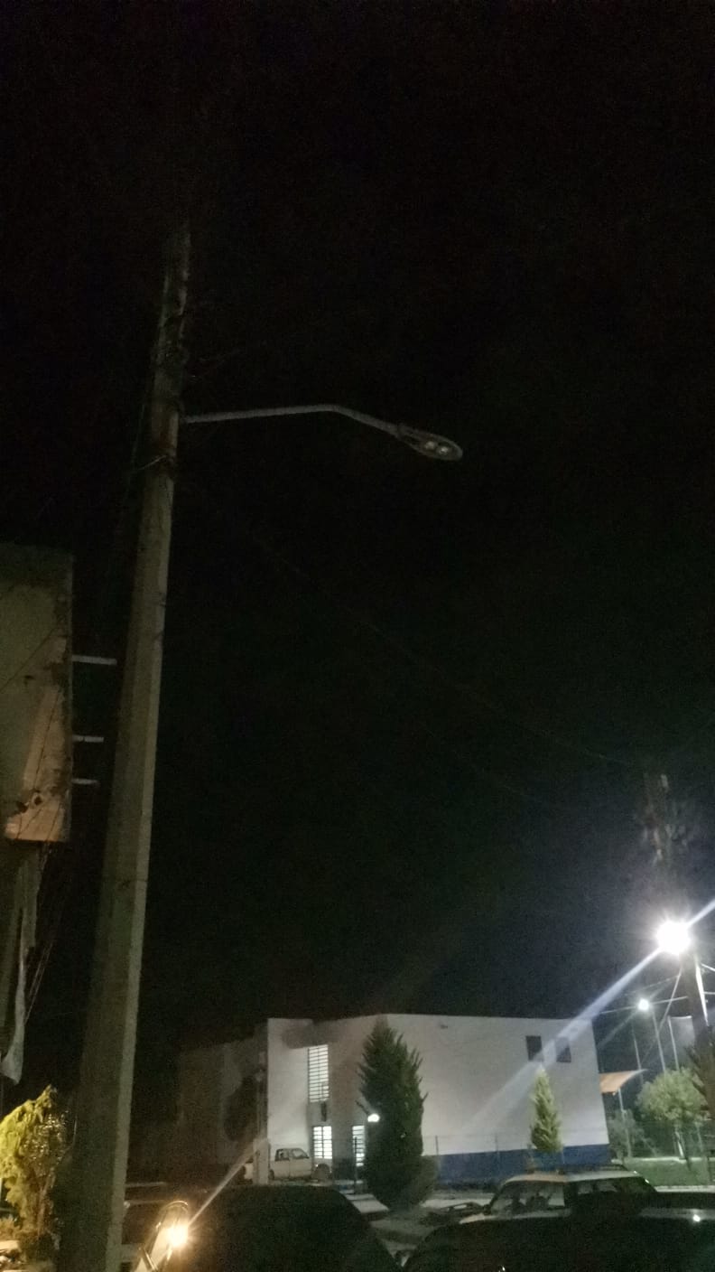 Luminaria fundida en la calle Tolvanera #44 de Col. Polvaredas